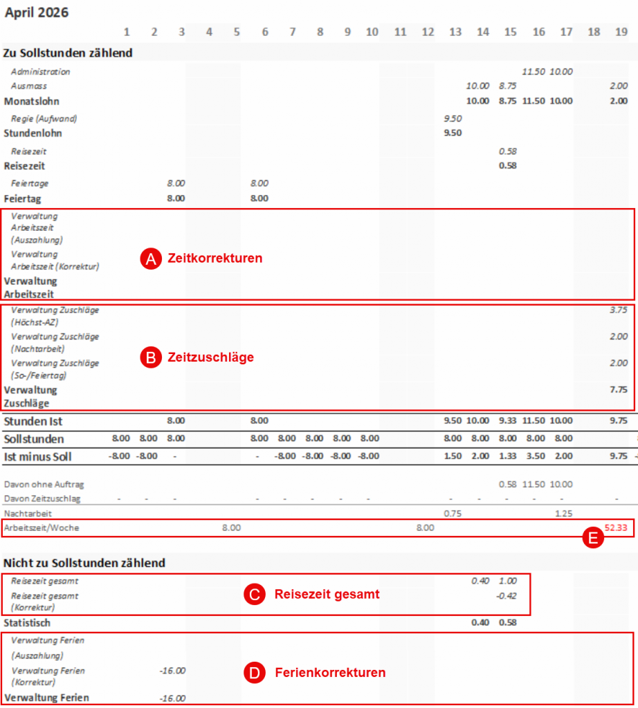 Zudem sind nun alle Zeit- und Ferienbuchungen enthalten, inklusive aller Korrekturen, Zuschläge und statistischen Buchungen.